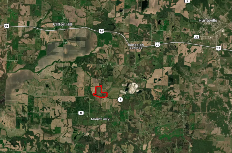 The south property line borders Sweet Springs Creek, a natural travel corridor that funnels cruising bucks during the rut. This strategic waterway enhances the property’s appeal as a premier hunting destination, with mature bucks frequently using the creek bottom as a secure movement route between bedding and feeding areas.