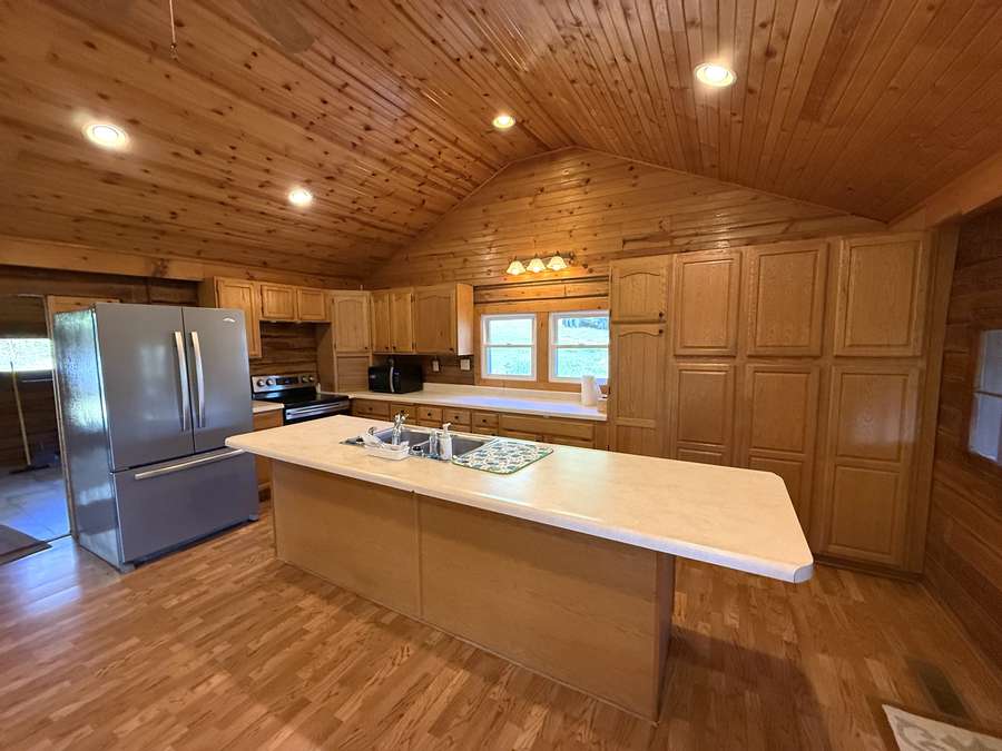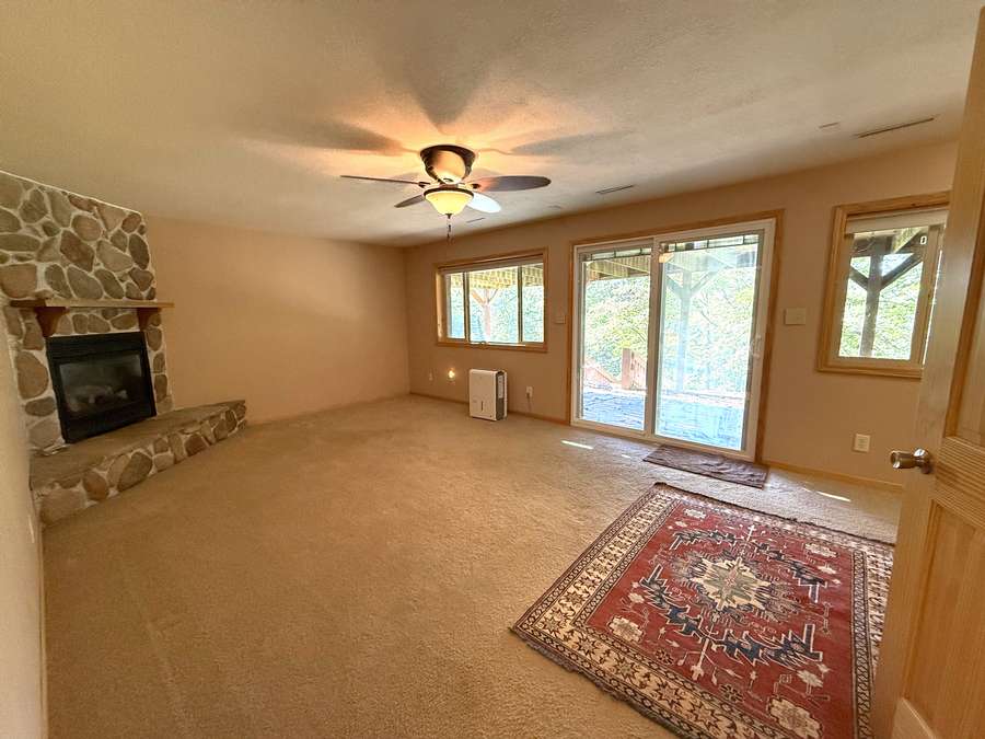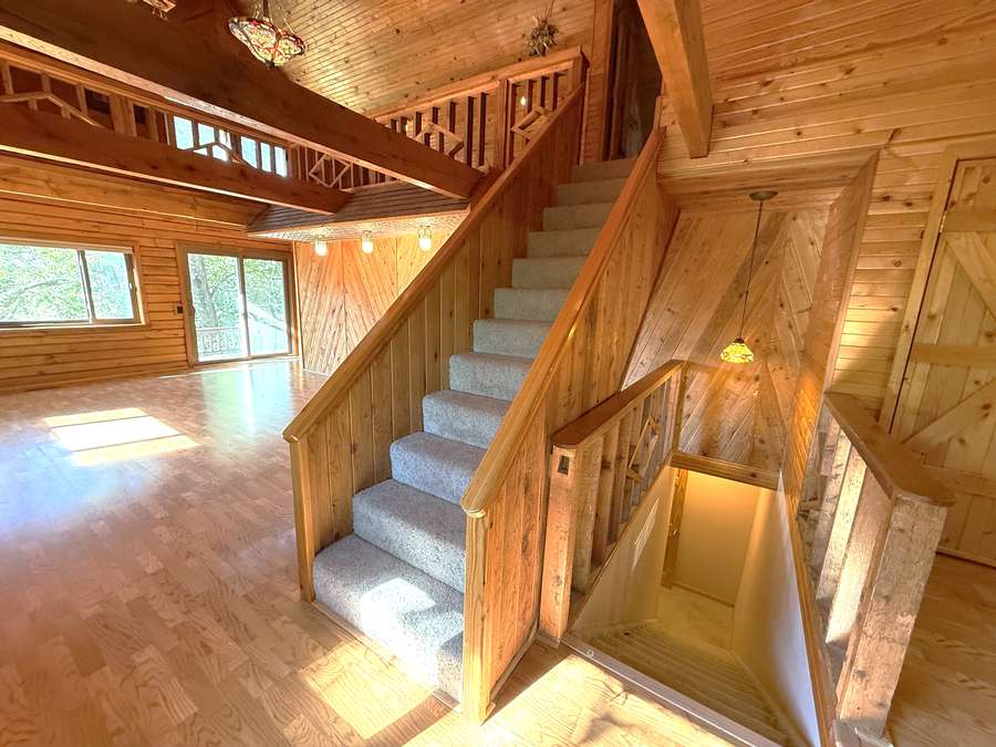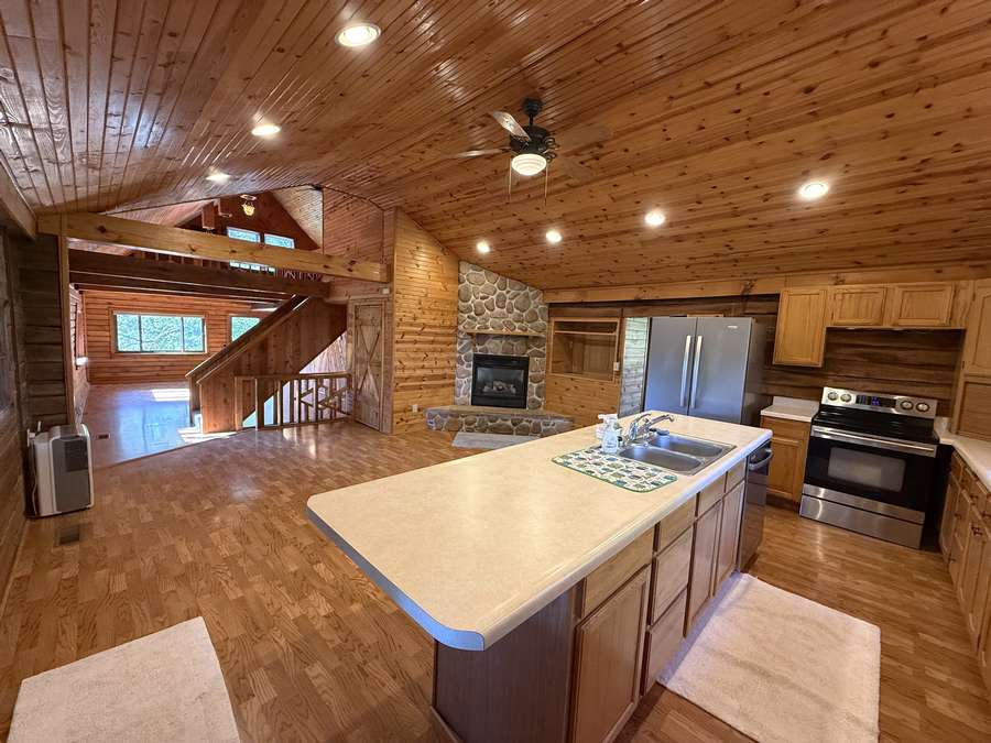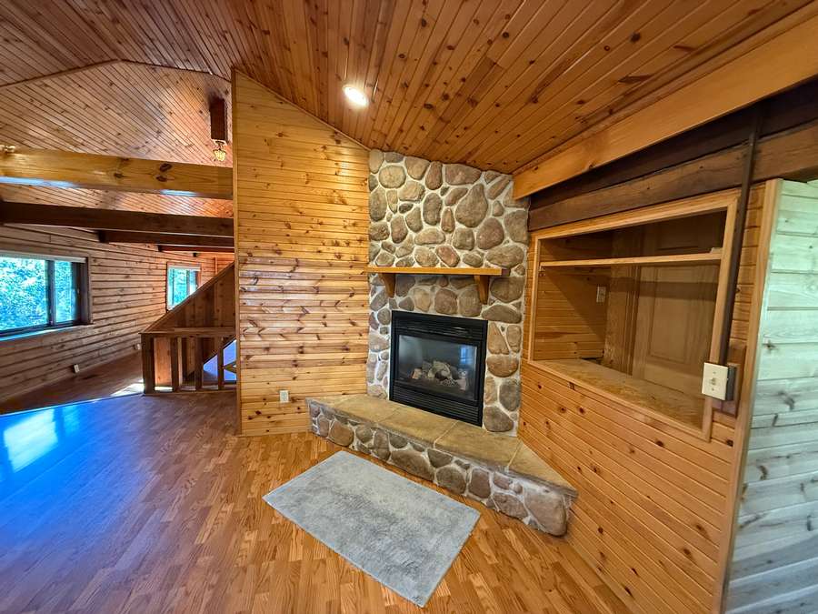 Featuring 3 spacious bedrooms and 2 full bathrooms, along with additional living and dining areas, there’s plenty of room to relax or entertain. Gorgeous custom woodwork and stone fireplaces throughout the home create a warm, authentic log cabin atmosphere.