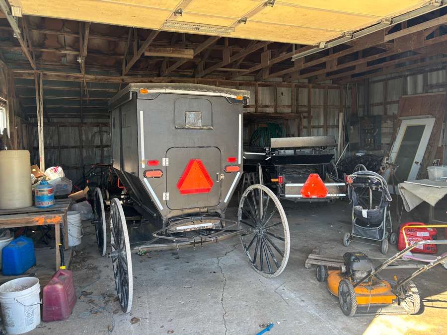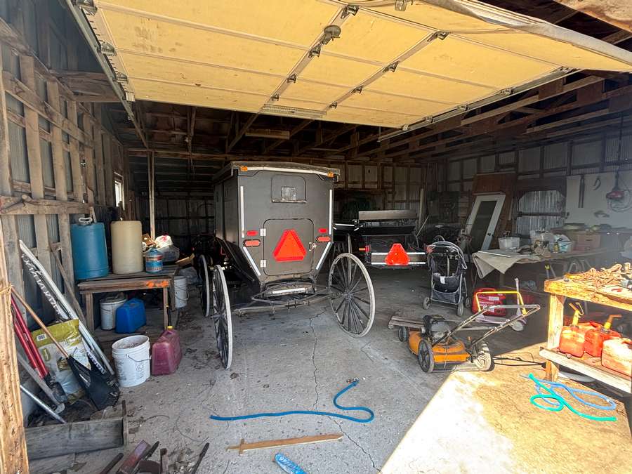 Multiple sheds and workshop buildings provide room for equipment, tools, feed storage, or hobby space.