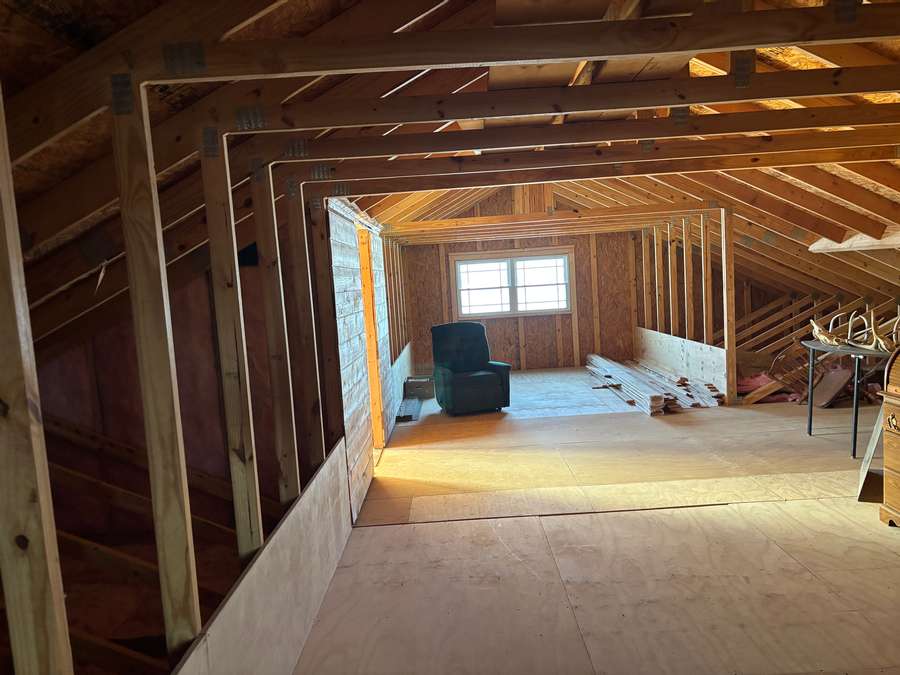 The unfinished second story adds valuable potential, offering space for two additional bedrooms, a recreation or family room, and extra storage—ideal for growing families, guests, or hobby space. An oversized attached garage contributes another 1,360 sq. ft. under roof, perfect for vehicles, a workshop, or future finished living space.