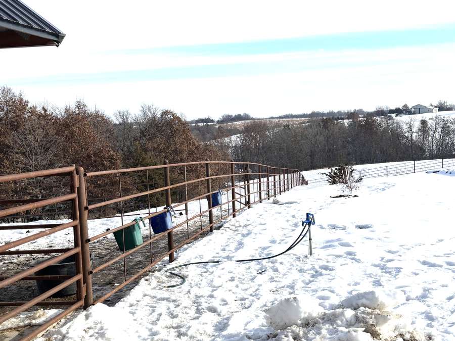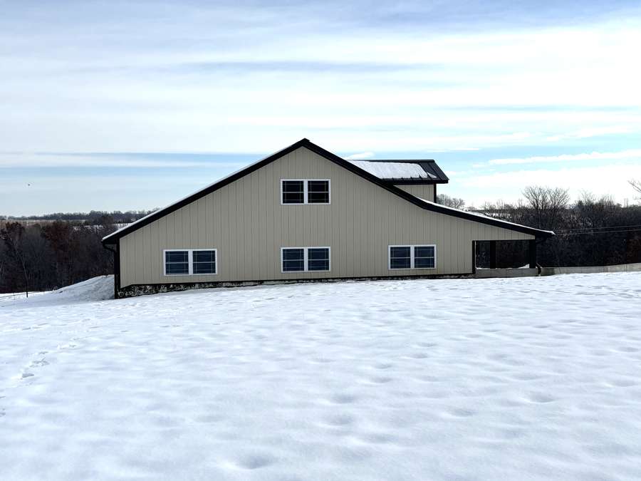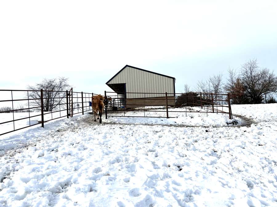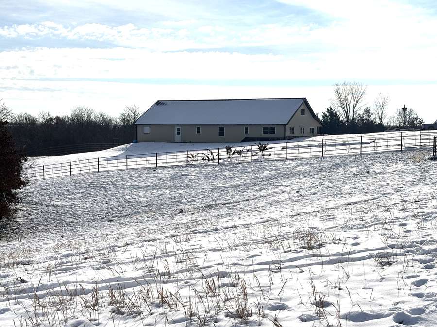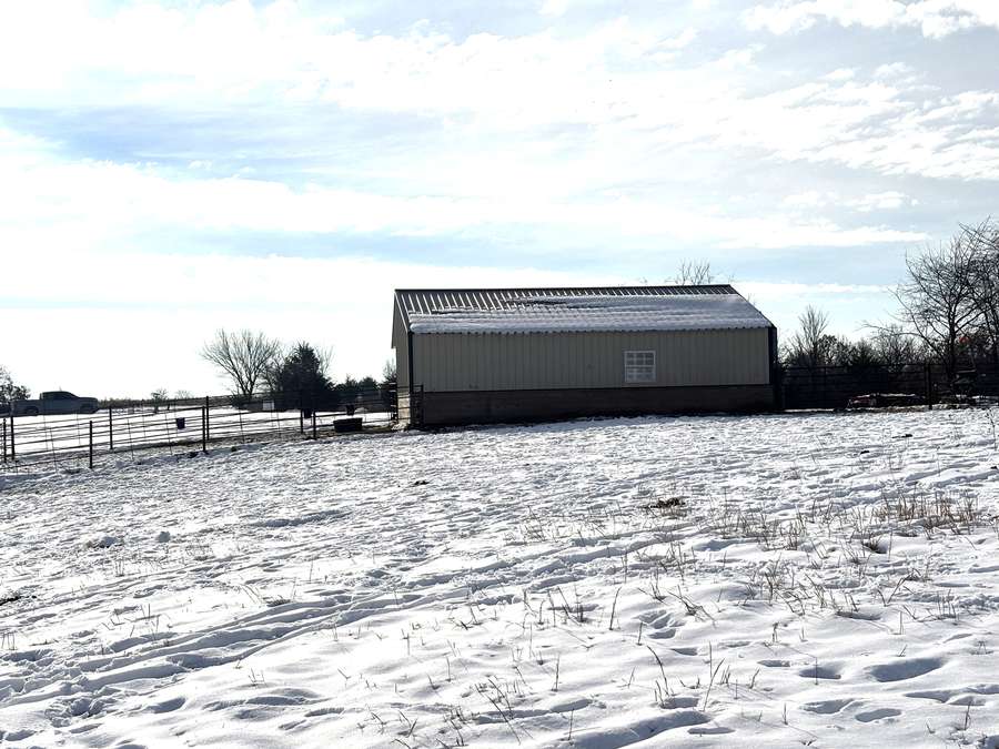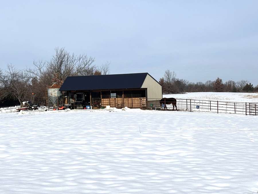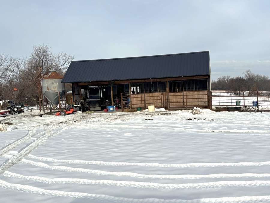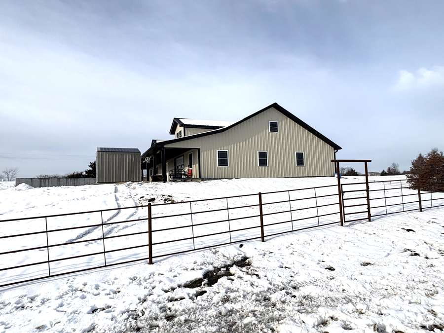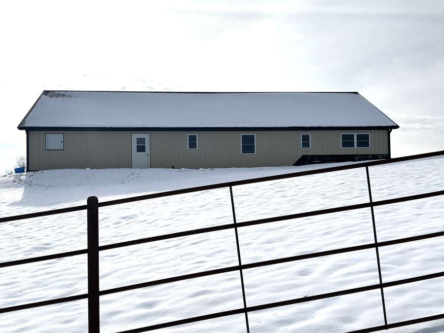 The farmstead also includes a cattle barn/loafing shed with rural water just northwest of the home. The yard is neatly separated from the pasture by a durable all-metal five-bar contour fence with welded panels, pipe posts, and hinged gates for easy access.