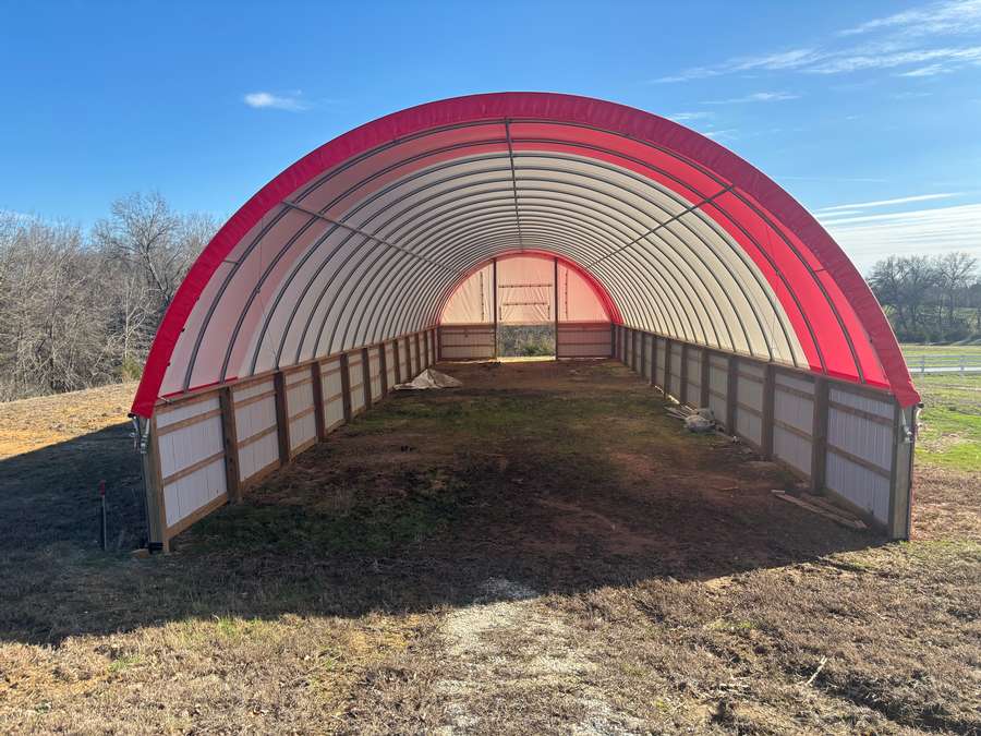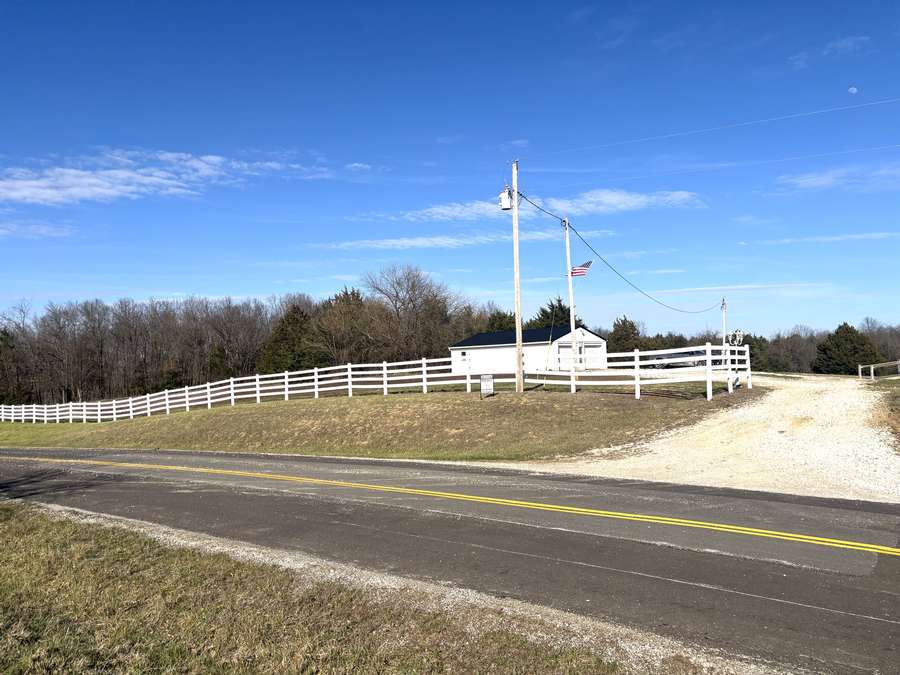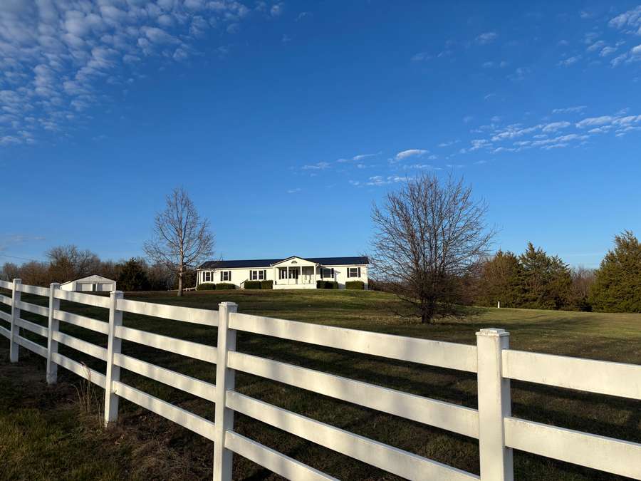 Outside, the property is well-equipped for a variety of uses. A white vinyl fence lines the road, adding both curb appeal and functionality—perfect for families involved in FFA or 4-H projects, or those looking to establish a homestead in a peaceful rural setting.