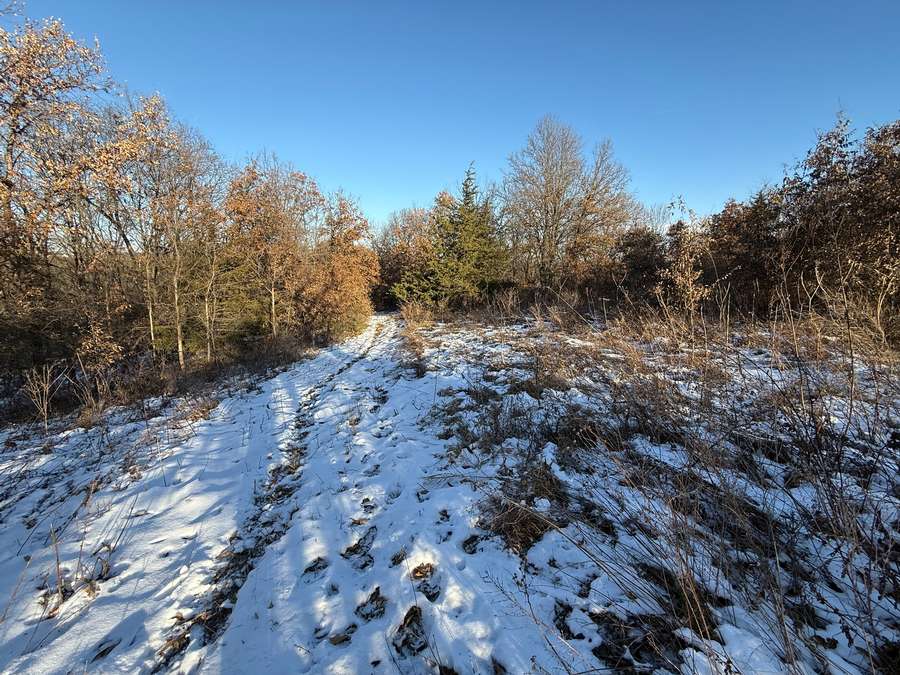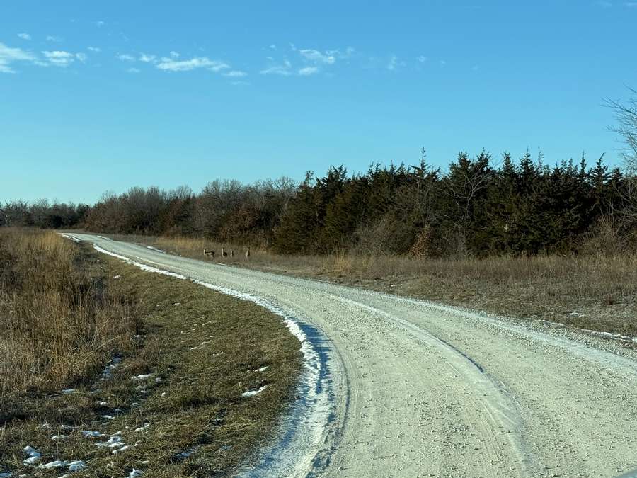 The rolling bluestem hillsides, cedar pockets, and creek bottom make the property feel larger than it is. Deer sign is heavy throughout, and the layout allows you to hunt nearly any wind without over-pressuring the farm. Water, electric, and fiber internet are available at the road, making it an easy place to build a home or cabin along either the dead-end gravel road or the blacktop.