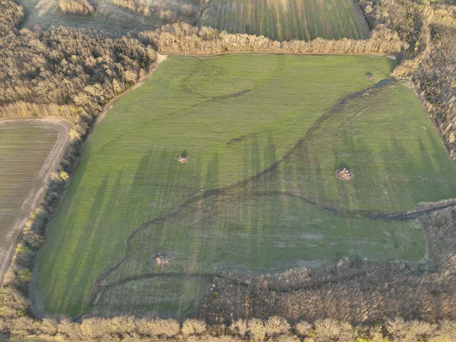 The south property line borders Sweet Springs Creek, a natural travel corridor that funnels cruising bucks during the rut. This strategic waterway enhances the property’s appeal as a premier hunting destination, with mature bucks frequently using the creek bottom as a secure movement route between bedding and feeding areas.