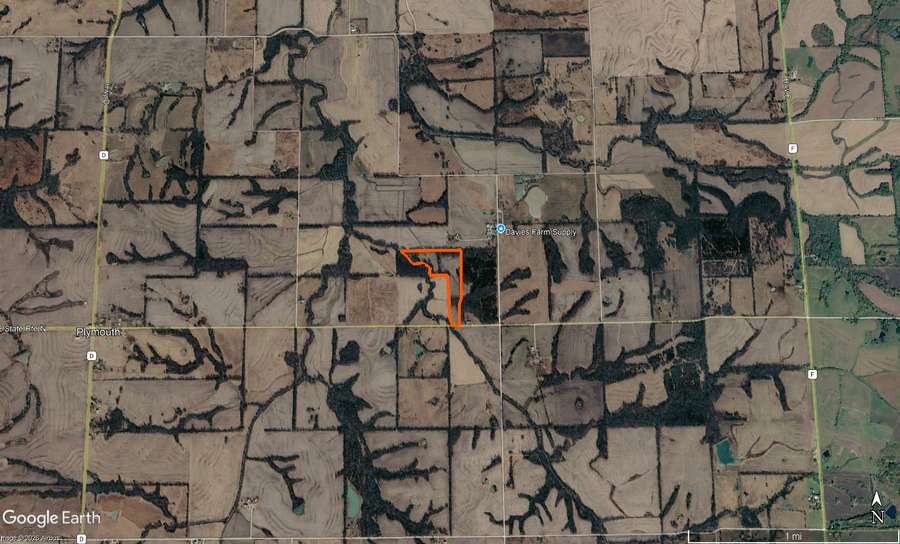 This 26± acre tract (subject to survey) is a solid mix of tillable ground and excellent habitat. Currently there are around 13± acres are tillable, with the remainder comprised of timber and brush, set up well for wildlife. Cottonwood creek creates part of the western border, and also establishes a natural travel route that deer use regularly (check out the pics of the deer crossing). The surrounding row-crop fields and cedar patches make this area especially strong for whitetail hunting, and it’s also an easy spot to set up for turkeys with multiple giant roost trees in different locations. There are several good locations for food plots, and the soils are Class II with an average NCCPI rating of 83, offering both productivity and long-term value. Water, electric, and fiber optic internet are available, giving you options if you want to build, camp, or improve the property down the road. The farm sits 40 minutes northeast of Richmond, 7 miles east of Braymer, and 15 miles southwest of Chillicothe, offering a quiet setting without being far from town.