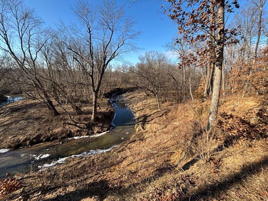 The remainder of the farm is comprised of a mix of hardwood timber located along the eastern portion of the property. Bear Creek runs through this timbered section, creating a natural travel corridor for wildlife. Bear Creek is locally known for excellent hunting and provides reliable, year-round water for deer, turkey, and other wildlife species.